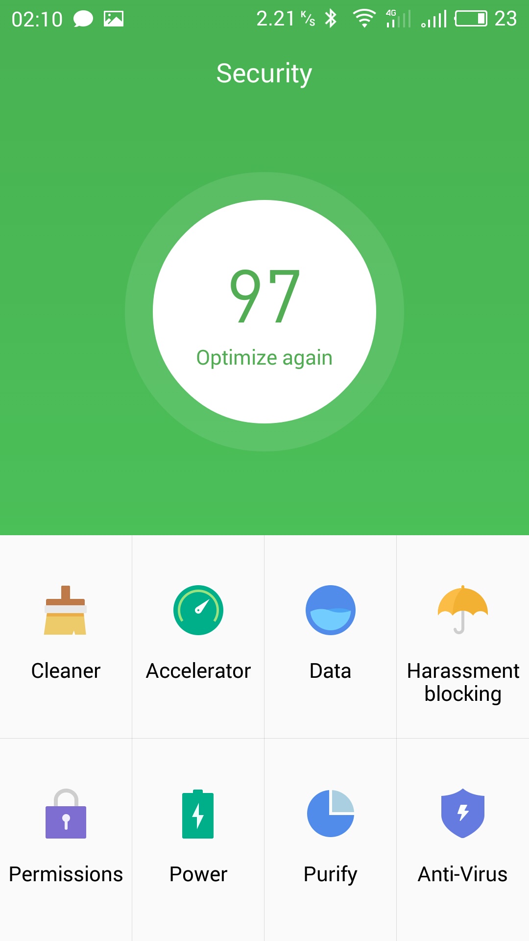 - Security – รวม Utility สำหรับจัดการไฟล์และระบบเครื่องไว้ในแอพเดียว ถือว่าสะดวกดีไม่ต้องไปโหลดแอพจากที่อื่นมาเพิ่ม จัดการได้ทั้งลบไฟล์ขยะ, เร่ง RAM, ตั้งค่าควบคุมปริมาณการใช้ Data ผ่านเครือข่าย, บล็อคเบอร์โทร-SMS, จัดการ Permissions แอพต่างๆ ที่อยู่ในเครื่อง, เลือกโหมดสำหรับประหยัดพลังงานยืดอายุการใช้แบตเตอรี่, และเช็คไวรัสให้ได้ด้วย