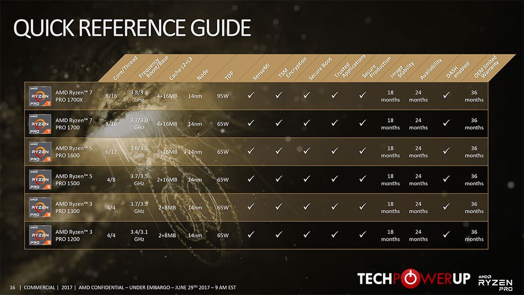 เมื่อวันพุธที่ 29 มิถุนายนที่ผ่านมา AMD ได้เปิดตัว CPU สำหรับเครื่องคอมพิวเตอร์เดสท็อปในซี่รี่ย์ Ryzen Pro ออกมาสำหรับคอมพิวเตอร์ส่วนบุคคลและคอมพิวเตอร์ระดับองค์กร ซึ่งแต่ละรุ่นมาพร้อมหน่วยความจำรักษาความปลอดภัยอยู่ในตัวตั้งแต่รุ่นเล็กจนรุ่นใหญ่