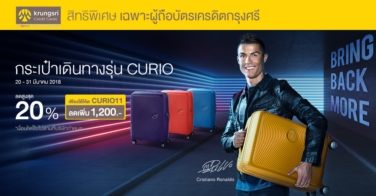 ซัมเมอร์นี้ถ้าหากใครกำลังวางแพลนท่องเที่ยวรับลมร้อน 11street จัดโปรโมชั่นกระเป๋าเดินทางจากแบรน์ชั้นนำระดับโลกอเมริกัน ทัวร์ริสเตอร์ มอบโปรโมชั่น “American Tourister X Krungsri” พร้อมเปิดตัวคอลเลคชั่นพิเศษจากอเมริกัน ทัวร์ริสเตอร์ ที่มีพรีเซ็นเตอร์คนใหม่ล่าสุดเป็น คริสเตียโน โรนัลโด นักฟุตบอลระดับโลก กับกระเป๋าเดินทางรุ่น Curio ที่มาพร้อมหลากหลายสีสันสดใส มีมาให้เลือกถึง 7 สีด้วยกัน อาทิ สีน้ำเงินเดนิม เหลือง และชมพู เป็นต้น