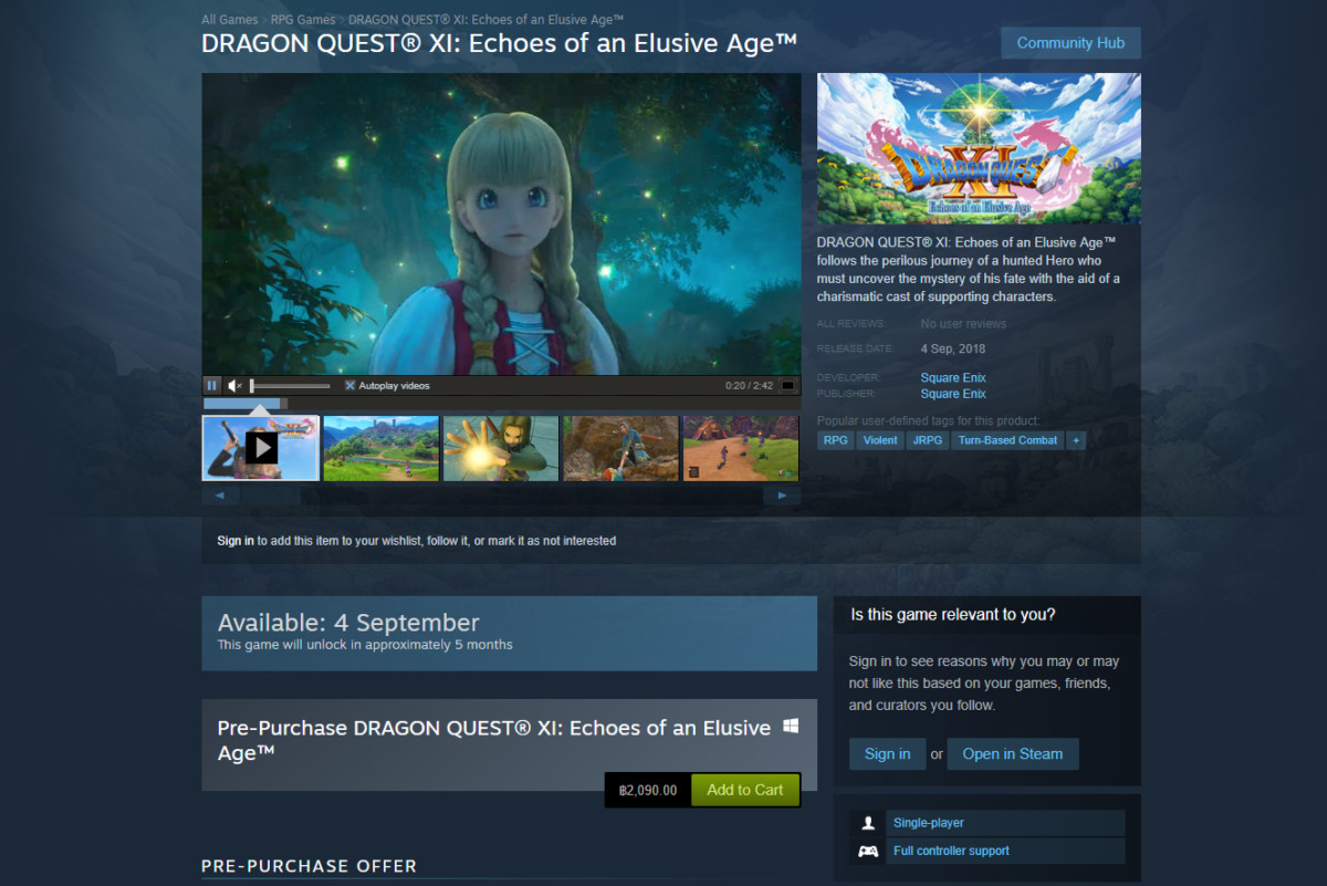 หลังจากที่เปิดตัวเวอร์ชั่นภาษาญี่ปุ่นไปเป็นที่เรียบร้อยตั้งแต่เดือนกรกฎาคมปี 2560 ทางเพจ ดราก้อน เควส ก็ได้ออกมาประกาศว่าเราจะทำการวางจำหน่าย ดราก้อน เควส XI: Echoes of Elusive Age ในเวอร์ชั่นภาษาอังกฤษในวันที่ 4 กันยายน 2561 นี้บน PS4 และ PC (ผ่าน Stream) โดยมีคลิปวีดีโอยั่วน้ำลายให้กับสาวกดูอีกด้วย