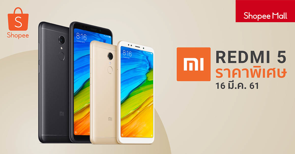 พิเศษ! เปิดตัว Shopee Xiaomi Official Shop พบกับ Redmi 5 16GB ราคาสุดคุ้ม 3,590 บาทเท่านั้น