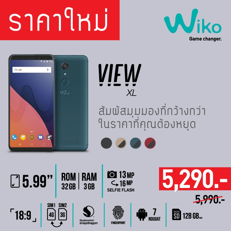 Wiko (วีโก) สมาร์ทโฟนจากฝรั่งเศส ปรับราคาใหม่ เป็นเจ้าของสมาร์ทโฟน Wiko View Series ทั้ง 3 รุ่น ในราคาสุดพิเศษกว่าใคร กับมุมมองที่กว้างกว่า หน้าจออัตราส่วน 18:9 สเปคครบครัน ในราคาที่คุณต้องหยุด มีให้เลือกตามความต้องการ