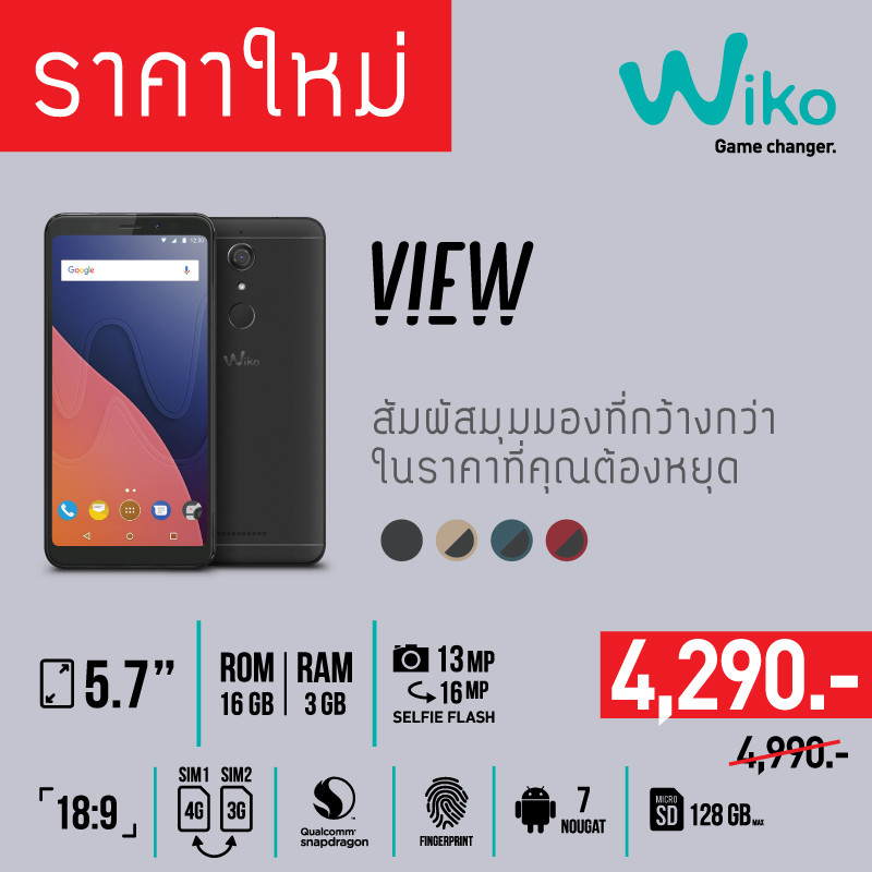 Wiko View Series ปรับราคาใหม่ รับลมร้อน เริ่มต้นเพียง 4,290 บาท