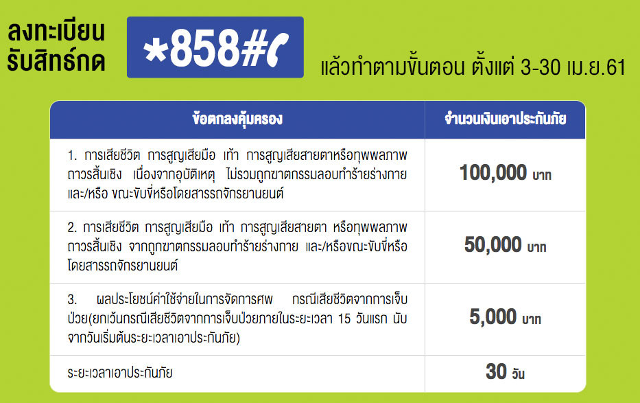 กรมธรรม์ ประกันภัยสงกรานต์อุ่นใจ กด *858# โทรออก