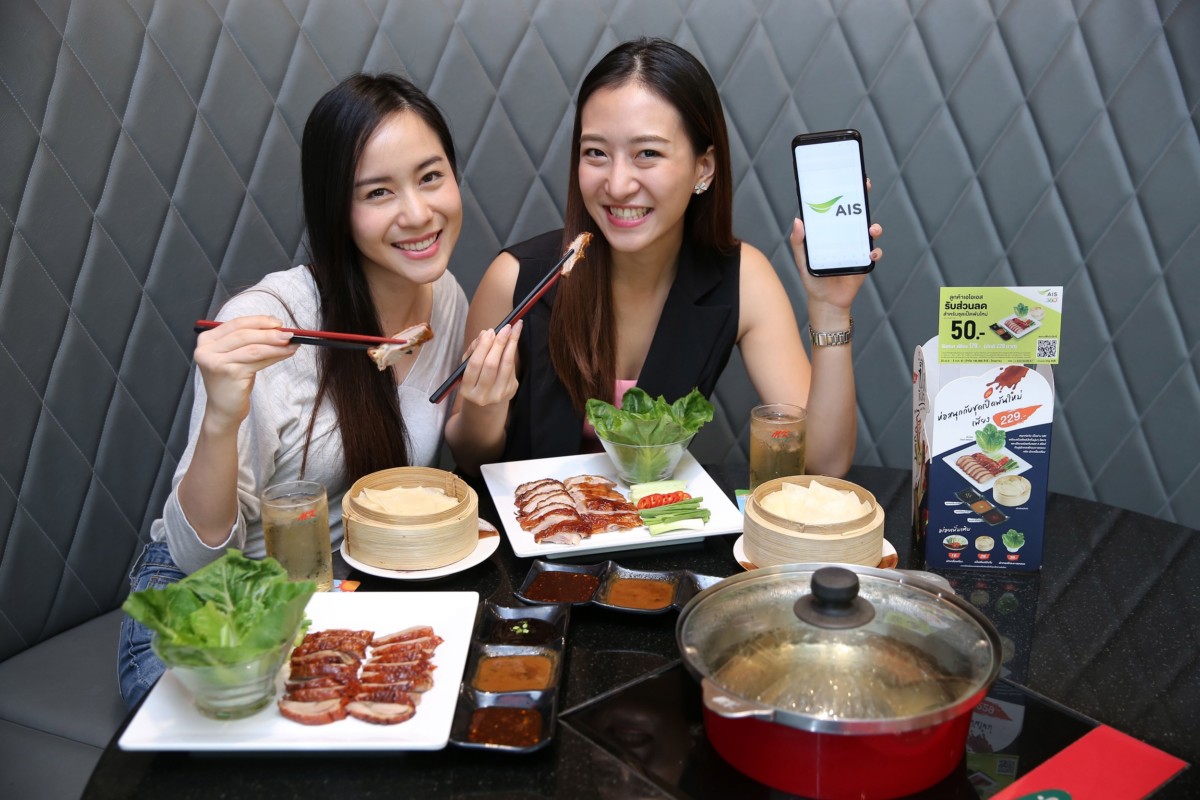 ให้ทุกคนได้สนุกกับการกินเป็ดย่างรูปแบบใหม่ สนุกห่อ อร่อยเหาะ สำหรับลูกค้า AIS รับส่วนลดราคา 50 บาท เมื่อสั่งเมนูชุดเป็ดพันใหม่ ในราคาพิเศษเพียง 179 บาท จากราคาปกติ 229 บาท ได้ตั้งแต่วันที่ 25 เมษายน 2561 – 5 กรกฎาคม 2561 (จำกัด 100,000 สิทธิ์/โครงการ) ดูรายละเอียดเพิ่มเติมได้ที่แอป my AIS หรือ www.ais.co.th/privilege