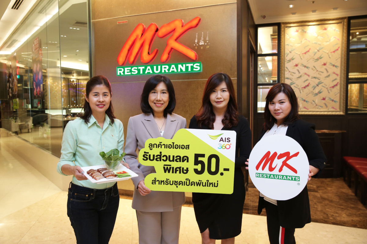 นางบุษยา สถิรพิพัฒน์กุล รองกรรมการผู้อำนวยการ สายงานบริหารลูกค้าและการบริการ บริษัท แอดวานซ์ อินโฟร์ เซอร์วิส จำกัด (มหาชน) หรือ เอไอเอส ร่วมกับ นางสาวพัชนีวรรณ ตันประวัติ ผู้ช่วยกรรมการผู้จัดการใหญ่สายงานการตลาด บมจ. MK Restaurants Group เปิดประสบการณ์ความอร่อยใหม่ของเป็ดย่างเอ็มเคร่วมมอบส่วนลดพิเศษกับเมนูใหม่ล่าสุด “ เป็ดพันใหม่ ”