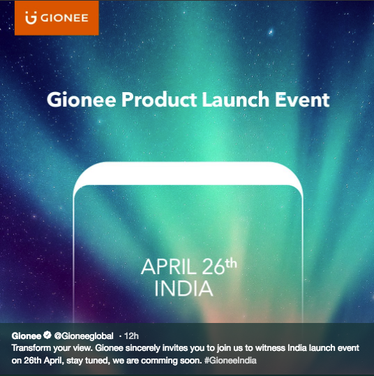 จีโอนี่โกลบอลได้ทวีตภาพพร้อมข้อความบน Twitter อย่างเป็นทางการว่า บริษัทจะเปิดตัวผลิตภัณฑ์ใหม่ ” Gionee S11 “ ที่อินเดียในวันพฤหัสบดีนี้ ภาพทีเซอร์แสดงโครงร่างของส่วนบนของโทรศัพท์ จากภาพคาดว่าน่าจะมาพร้อมหน้าจอแบบ FullView Display ในสัดส่วน 18: 9
