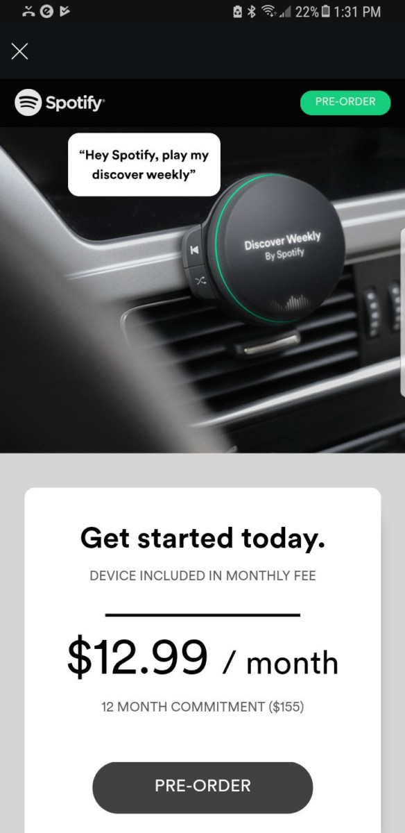 ก่อนหน้านี้เราเคยได้ยินข่าวลือของบริษัทสตรีมมิ่งเพลงชื่อดังอย่าง Spotify ที่ว่า แอบซุ่มพัฒนาลำโพงเป็นของตัวเองมานานแล้ว ล่าสุดก็มีป๊อปอัปโฆษณาสั่งจองอุปกรณ์ฟังเพลงขนาดเล็กสำหรับรถยนต์ ที่คาดว่าน่าจะเป็น ” Car speaker ” โปรดักส์ใหม่ที่กำลังจะเปิดตัวเร็วๆ นี้
