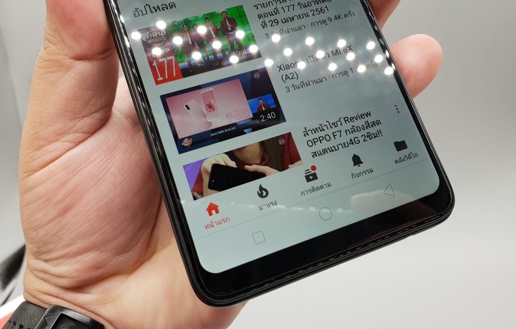 และแน่นนอนเมื่อเป็นจอแบบ FullView ก็จะต้องมาพร้อมกับติ่งด้านบน ซึ่งมีขนาดไม่ใหญ่มาก เพราะเว้นไว้สำหรับกล้องหน้า, ลำโพงสนทนา และเซนเซอร์ ทำให้การแสดงผลในส่วนบาร์ด้านบนได้พื้นที่กว้าง