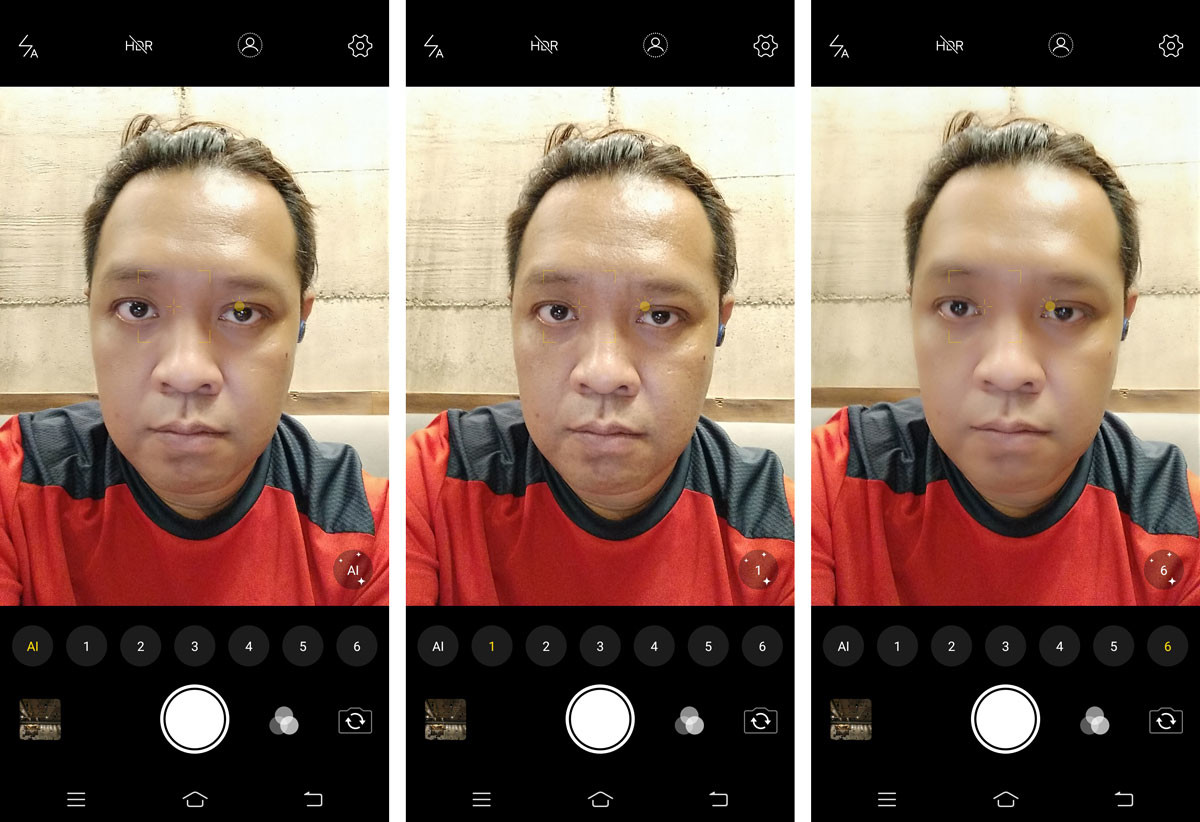 กล้องหน้าเซลฟี่ การปรับระดับความบิวตี้ มีให้เลือกได้ 6 ระดับ และเพิ่มตัว AI Beauty ที่จะปรับให้แบบเหมาะสม ที่ลองใช้แล้วรู้สึกชอบนะ คือมันไม่ได้เนียนจนเฟค หรือปรับจนดูไม่เป็นธรรมชาติ