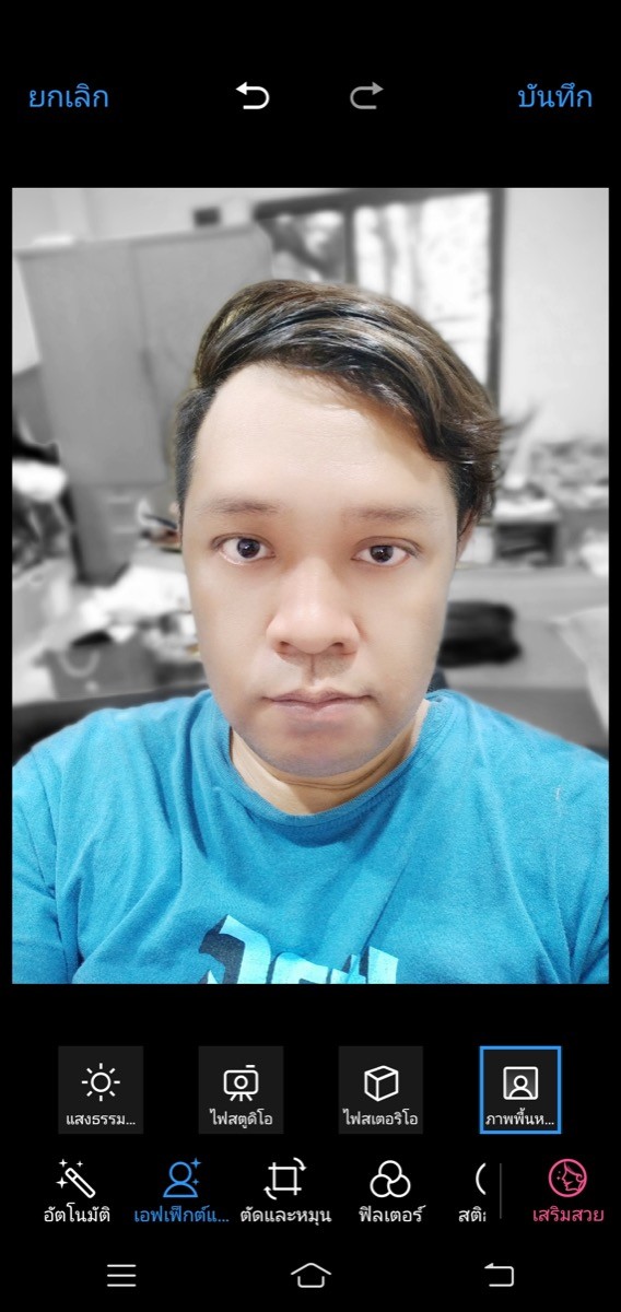 Portrait mode นอกจากจะถ่ายภาพแบบหน้าชัดหลังเบลอได้แล้ว ยังเลือปรับแต่งแสงที่ตัวบุคคลได้ และปรับฉากพื้นหลังให้เป็นสีขาวดำได้ด้วย