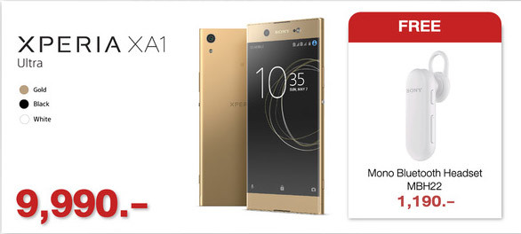 Xperia™ XA1 Ultra สมาร์ทโฟนระดับกลางที่มอบประสิทธิภาพการใช้งานที่คุ้มค่าและคุณภาพกล้องถ่ายรูปไม่แพ้รุ่นแฟล็กชิพในราคาที่ย่อมเยาว์ เพียง 9,990 บาท และรับฟรี ชุดหูฟังโมโนบลูทูธ มูลค่า 1,190 บาท