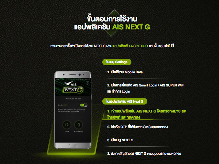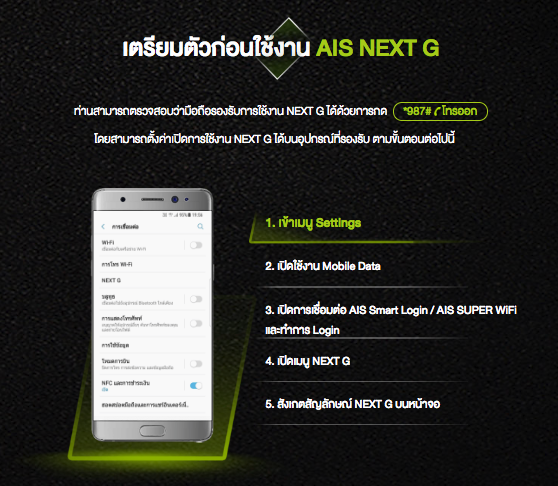 - รายละเอียดเกี่ยวกับ AIS NEXT G สามารถดูได้ที่ ดูข้อมูลเพิ่มเติม