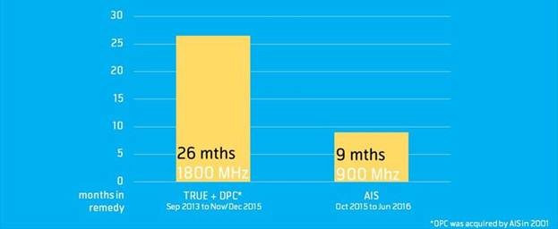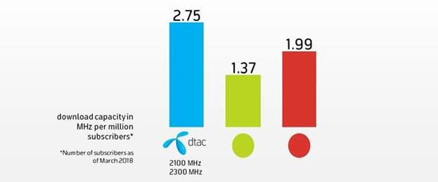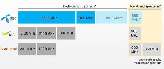 ถึงแม้ว่าดีแทคจะสิ้นสุดสัมปทานคลื่น 1800 MHz และ 850 MHz ดีแทคยังมีปริมาณคลื่นความถี่ที่จะให้บริการต่อจำนวนลูกค้ามากกว่าผู้ประกอบการรายอื่น (ดีแทคมีจำนวนคลื่นเฉลี่ย 2.75 MHz ต่อจำนวนลูกค้า 1 ล้านราย ในขณะผู้ให้บริการรายอื่นมีจำนวน 1.37 MHz และ 1.99 MHz)
