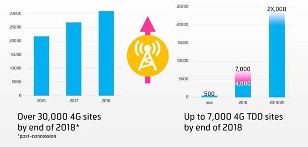 ทั้งนี้ เพื่อเพิ่มประสิทธิภาพโครงข่าย ดีแทคยังเร่งขยายสถานีฐานอย่างรวดเร็วกว่าที่ผ่านมา โดยมีการขยายเพิ่มสถานีฐาน 3G/4G บนโครงข่าย 2100 MHz จำนวน 4,000 แห่งต่อปีในช่วง 2560-2561 ซึ่งขยายรวดเร็วกว่าเดิมถึง 2 เท่าเมื่อเทียบกับปีก่อน ดีแทคยังรุกขยายสถานีฐานสำหรับการใช้งานบนคลื่นความถี่2300MHz dtac TURBO ด้วยเทคโนโลยี 4G TDD ให้ได้อีกอย่างน้อย 4,000 แห่งในปีนี้ตามข้อตกลงกับทีโอที และหากดีแทคสามารถทำได้เต็มกำลังการติดตั้งสถานีฐานคาดว่าจะขยายได้มากถึง 7,000 แห่งในปลายปีนี้