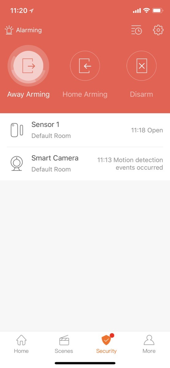 - Away Arming สำหรับเวลาที่เราออกนอกบ้าน หากมีความผิดปกติกับเซนเซอร์ ก็จะมี Notification พร้อมเสียง Alert แจ้งเตือน