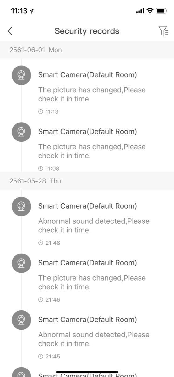 เมื่อเกิดความผิดปกติในบ้าน อย่างเช่น มีคนเข้ามาในบ้าน หรือมีเสียงดัง กล้องจะแจ้งเตือนมายังแอปบนมือถือทันที