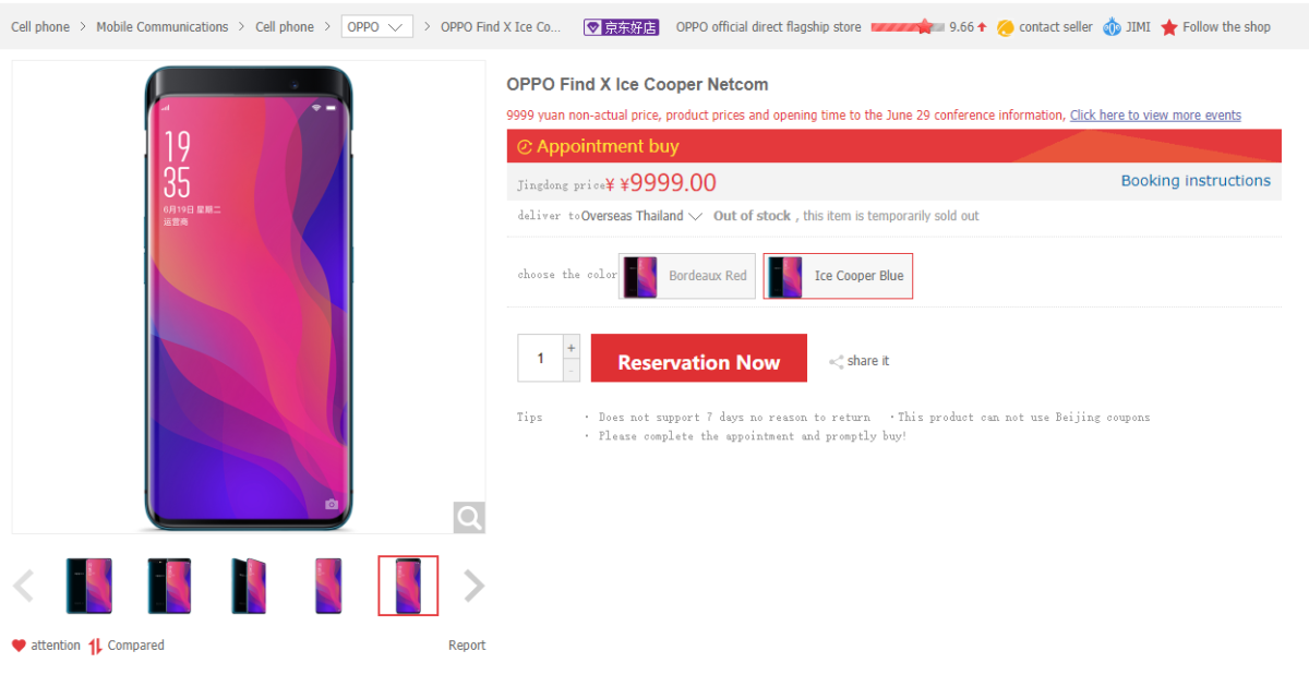 หลังจบงานเปิดตัวไปสมาร์ทโฟนรุ่นใหม่นี้จะวางจำหน่ายในบางประเทศในยุโรป เช่น ฝรั่งเศส อิตาลี สเปน และเนเธอร์แลนด์ ในช่วงเดือนสิงหาคมเป็นต้นไป ล่าสุด ! ก็มีข่าวว่า JD.Com ร้านค้าออนไลน์ของจีนออกมายืนยันเรื่องการจำหน่ายออปโป้ไฟนด์เอ็กซ์แล้วว่า จะเริ่มเปิดพรีออเดอร์ผ่านเว็บของ JD.Com ตั้งแต่วันนี้เป็นต้นไป และจะทำการวางจำหน่ายหน้าร้านอย่างเป็นทางการในวันที่ 29 มิถุนายนนี้