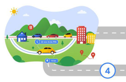 หากการจราจรติดขัด แม้แต่การใช้ทางลัดก็อาจจะเสียเวลามากกว่าเดิม Google Maps แสดงสภาพการจราจรในบริเวณรอบๆ คุณและตามเส้นทางที่คุณเดินทางแบบเรียลไทม์ พร้อมทั้งแสดงเวลาที่ใช้ในการเดินทางและเวลาที่จะถึงจุดหมายปลายทาง เพื่อให้คุณคาดการณ์ได้ว่าจะไปถึงที่หมายได้เร็วหรือช้ากว่าเวลาที่กำหนด