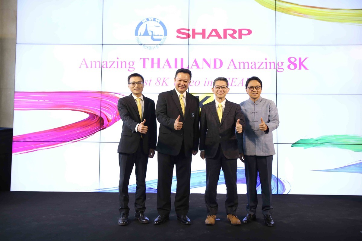 ดร. ยุทธศักดิ์ สุภสร ผู้ว่าการการท่องเที่ยวแห่งประเทศไทย (ททท.) เปิดเผยว่า “วิดีโอส่งเสริมการท่องเที่ยวประเทศไทยที่ผลิตด้วยเทคโนโลยี 8 เค เรื่องแรกของภูมิภาคอาเซียน จะเป็นปรากฏการณ์สำคัญในแวดวงการประชาสัมพันธ์การท่องเที่ยว ที่สร้างประสบการณ์ใหม่ น่าตื่นตาตื่นใจ สร้างแรงบันดาลใจ และเชิญชวนนักท่องเที่ยวทั้งชาวไทยและชาวต่างประเทศให้ออกเดินทางมาชื่นชมความงดงามที่ไม่สิ้นสุดของเมืองไทย ซึ่งเกิดจากความร่วมมือระหว่างบริษัท ชาร์ป ไทย จำกัด และการท่องเที่ยวแห่งประเทศไทย ในโครงการ “Amazing Thailand Amazing 8K” ซึ่งเป็นความร่วมมือครั้งสำคัญระหว่างหน่วยงานภาครัฐและภาคเอกชนในการส่งเสริมภาพลักษณ์ทางการท่องเที่ยวไทย โดยเป็นการนำเทคโนโลยีล่าสุดของชาร์ป “8K Ecosystem” มาใช้ในการจัดทำสื่อประชาสัมพันธ์เพื่อช่วยนำเสนอภาพความสวยงามของประเทศไทยในมิติใหม่ที่ให้ความคมชัดสูงสุดเสมือนจริงอย่างที่ไม่เคยเห็นมาก่อน ซึ่งชาร์ปได้นำทีมงานถ่ายทำมืออาชีพจากไต้หวัน เดินทางมาบันทึกภาพสถานที่ท่องเที่ยว กิจกรรม เทศกาล และงานประเพณีในประเทศไทยร่วมกับบุคลากร ททท. โดยใช้กล้องบันทึกภาพเทคโนโลยีชาร์ป 8 เค ตัวแรกของโลกบันทึกช่วงเวลาแห่งความสนุกสนาน และทิวทัศน์อันงดงามของเมืองไทยมานำเสนอสู่สายตาชาวโลก ตามแคมเปญ Open to the New Shades ซึ่งวิดีโอดังกล่าวจะนำไปเผยแพร่ผ่านช่องทางประชาสัมพันธ์ต่างๆ ของ ททท. และผ่านจอภาพ SHARP AQUOS 8K Series ของชาร์ปที่มีเครือข่ายเข้าถึงผู้บริโภคจำนวนมาก โดยเฉพาะในตลาดเอเชียและอาเซียน”