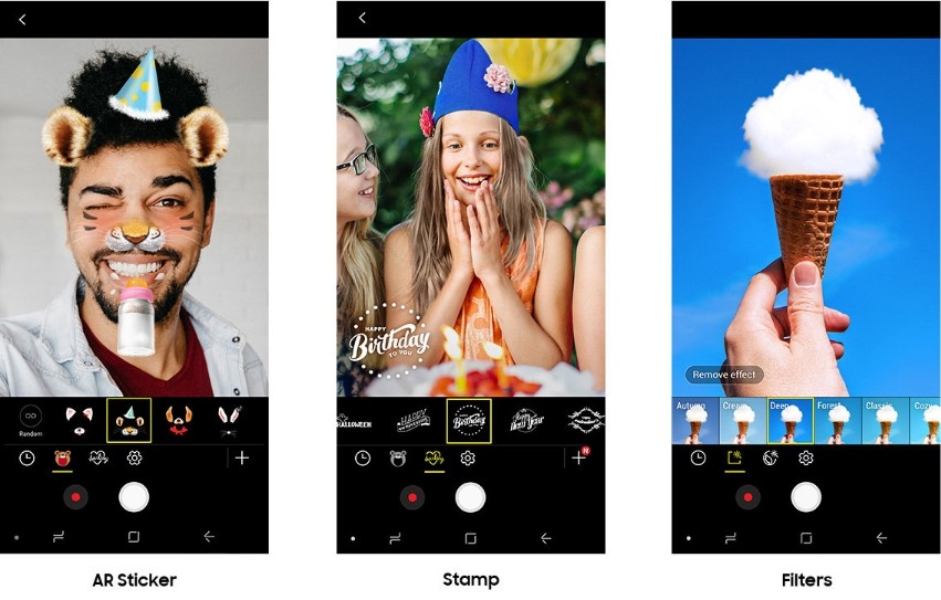 นอกจากนี้ สำหรับผู้ที่ชอบถ่ายภาพโดยเฉพาะภาพเซลฟี่ ด้วยกล้องหน้าความคมชัดสูงถึง 24 ล้านพิกเซลของ กาแลคซี่ เอ 8 สตาร์ ยังมาพร้อมโหมดสมาร์ทบิวตี้ ที่ทำงานเหมือนระบบ AI ปรับแต่งภาพอัตโนมัติ ให้ภาพเซลฟี่สวย ชัด เข้ากับทุกสภาพผิวโดยวิเคราะห์จากอายุและเพศ ที่สามารถปรับผิวให้ เนียนสวย ลบรอยคล้ำ ปรับสีฟัน ขนาดตา และใบหน้าให้รูปสวยทุกช๊อต ทั้งกล้องหน้าและกล้องหลัง โดยสามารถปรับแต่งได้สูงสุด 3 หน้า ในพรีวิว และ 10 หน้า เมื่อทำการถ่าย และเมื่อมีการใช้งานโหมด ไลฟ์ โฟกัส (Live Focus) เลนส์คู่อัจฉริยะจะทำงานพร้อมกัน เพื่อถ่ายหน้าชัด หลังละลาย พร้อมปรับได้ทั้งก่อนและหลังถ่าย และเพื่อการถ่ายภาพสนุกอย่างมีเอกลักษณ์มากขึ้น กาแลคซี่ เอ 8 สตาร์ ยังมีฟีเจอร์กล้องเพิ่มเติม เช่น โหมด โปรไลต์ติง (Pro-lighting) ที่สามารถปรับแสงผ่านกล้องหน้าได้มากถึง 3 รูปแบบสภาพแสง หรือ เออาร์ สติกเกอร์ (AR Sticker) สติกเกอร์ตกแต่งให้การถ่ายภาพสนุกสนานมากขึ้นกว่าเดิมที่มีให้เลือกมากถึง 93 แบบ