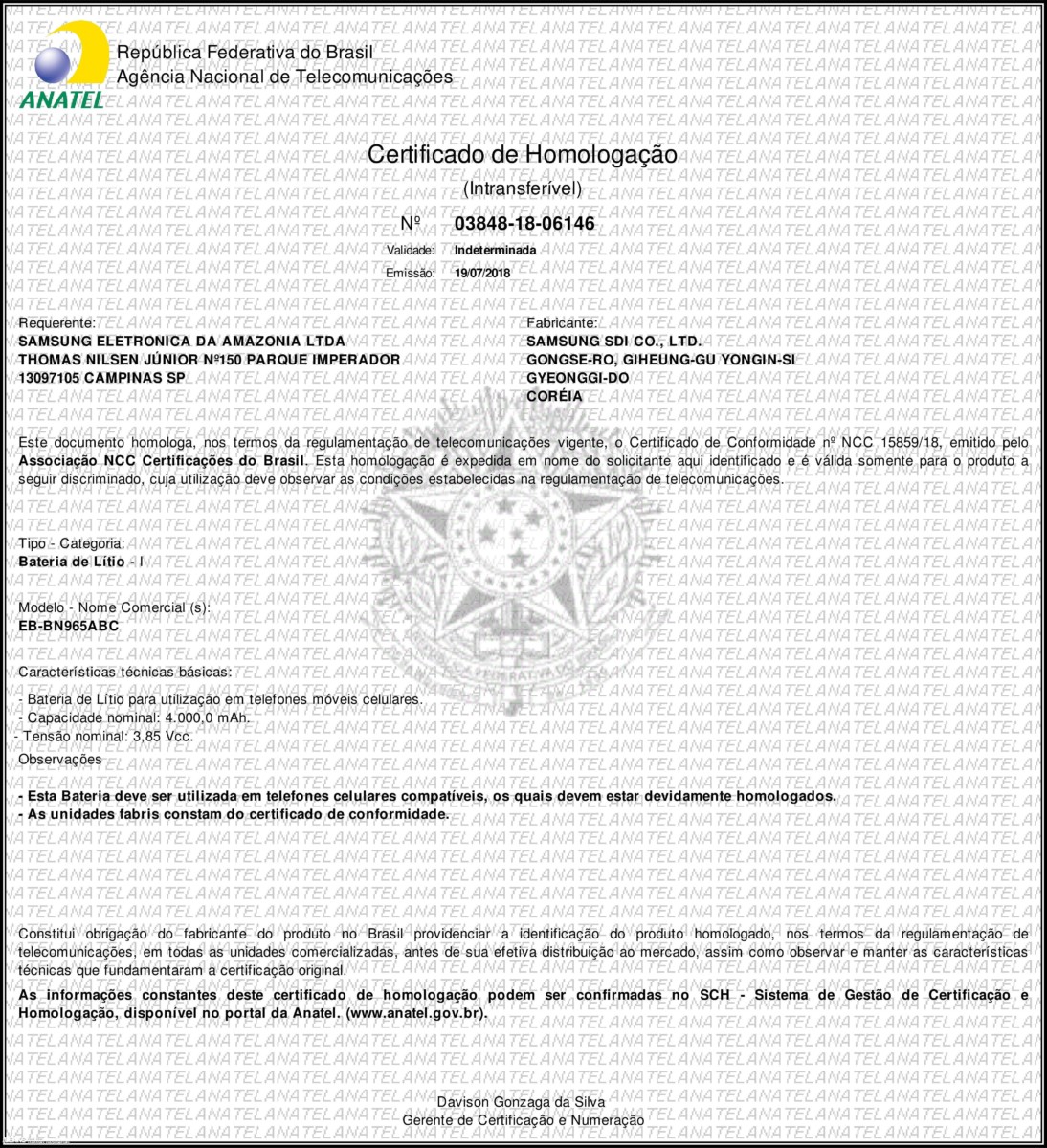 เหลืออีกไม่กี่สัปดาห์ก็จะถึงงานเปิดตัวของสมาร์ทโฟนที่สาวกกาแลคซี่โน๊ตทุกคนรอคอยแล้ว สำหรับ Galaxy Note 9 ซึ่งที่ผ่านมาเราก็ได้ยินข่าวหลุดเกี่ยวกับรายละเอียดสเปคของสมาร์ทโฟนรุ่นนี้มากมายนับครั้งไม่ถ้วน และล่าสุดก็มีรายงานข่าวออกมาว่า ANATEL (หน่วยงานการสื่อสารโทรคมนาคมของบราซิล) ออกมายืนยันว่ากาแลคซี่โน๊ต 9 จะมาพร้อมแบตเตอรี่ 4000mAh