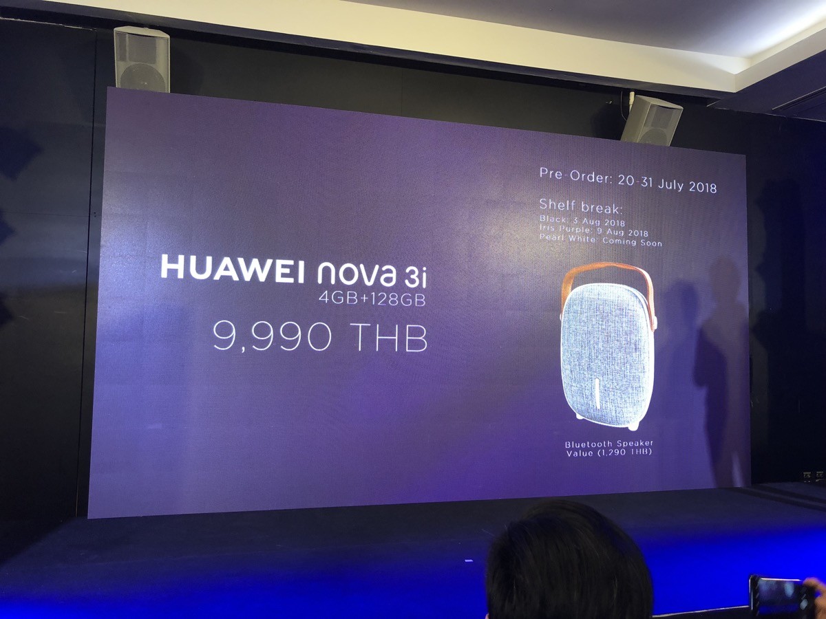 Huawei Nova 3i ความจุ 128GB | RAM 4GB ราคา 9,990 บาท เปิดจอง 20-31 กรกฎาคมนี้ โดยจะได้รับของแถมฟรี ลำโพง Huawei Bluetooth Speaker มูลค่า 1,290 บาท