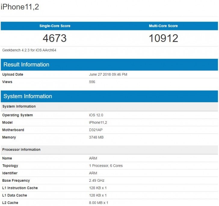 ตามข้อมูลที่ปรากฏไอโฟนรุ่นใหม่นี้มีชื่อว่า iPhone 11 , 2 รันด้วยระบบปฏิบัติการ iOS 12 และใช้แรม 4GB ควบคู่ไปกับชิป D321AP ซึ่งเป็นชิปใหม่และแรงกว่าชิปของ iPhone X ถึงแม้ว่าแอปเปิ้ลจะทำการเพิ่มประสิทธิภาพให้กับสมาร์ทโฟนรุ่นใหม่ด้วยการเปิดตัวชิปใหม่และแรมที่มีขนาดเพิ่มมากขึ้นแต่ก็ไม่แน่ว่า Performance ก็อาจจะไม่ได้สูงอย่างที่เราคาดหวังเอาไว้เหมือนเมื่อตอน iPhone X เปิดตัวก็เป็นได้ยังไงก็คงต้องรอดูกันว่าจะดีกว่าเดิมจริงหรือไม่