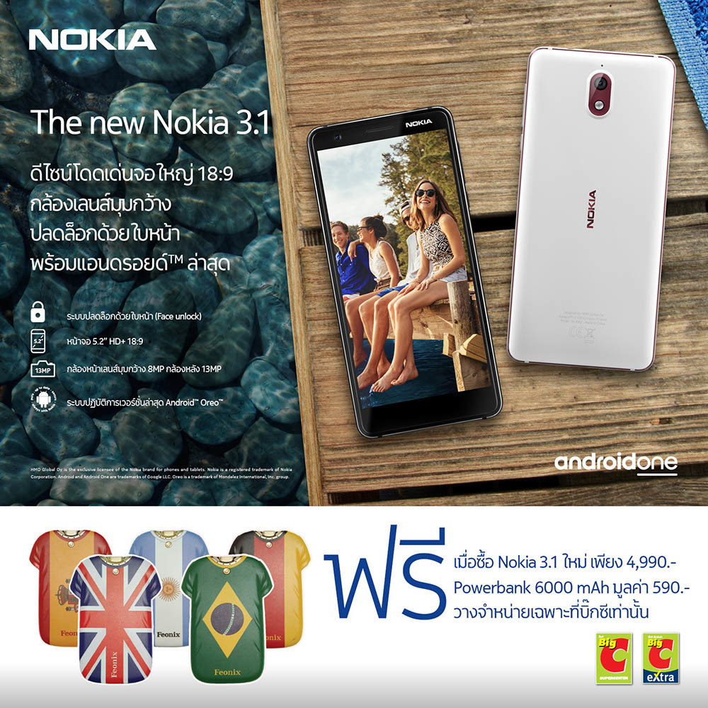 มีให้เลือก 2 สีได้แก่ สี Black/Chrome และ White/Iron มีหน่วยความจำ RAM 2GB ความจุ 16GB พร้อมวางจำหน่ายแบบเอ็กซ์คลูซีฟ ที่บิ๊กซี ซูเปอร์เซ็นเตอร์ทุกสาขาทั่วประเทศในราคาเพียง 4,990 บาท พิเศษสุดสำหรับลูกค้าที่ซื้อ NewNokia 3.1 ตั้งแต่วันนี้รับฟรีอินเตอร์แนชั่นแนลพาวเวอร์แบงค์ลิมิเต็ดอิดิชั่นมูลค่า 590 บาท