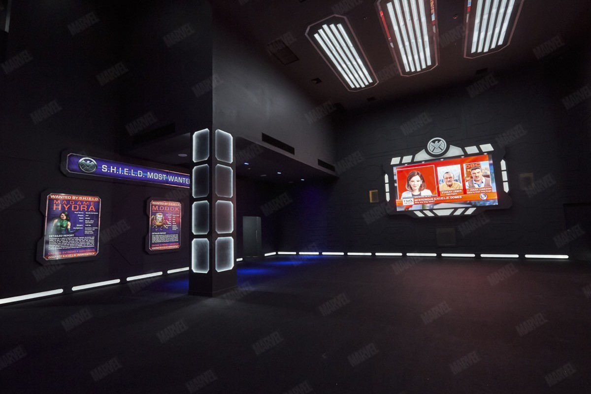 และที่ผนังทางเดินของโซนนี้ จะมีอุปกรณ์และพร้อบของตัวละครมาร์เวล ตั้งโชว์ให้ได้ดูด้วย