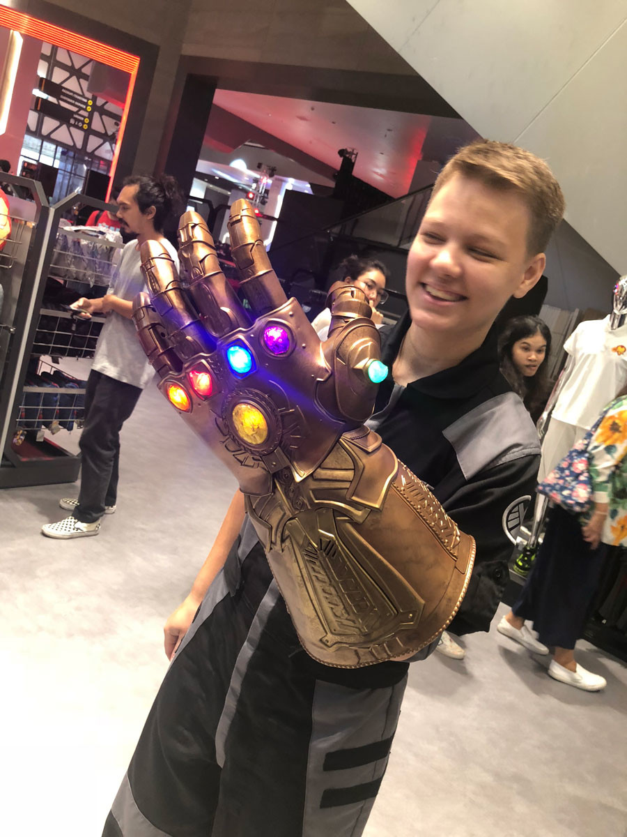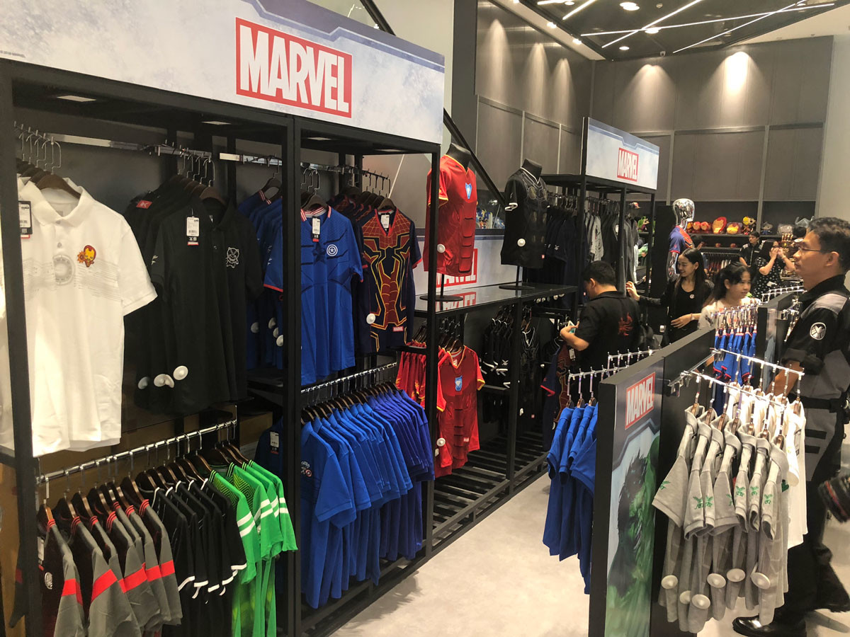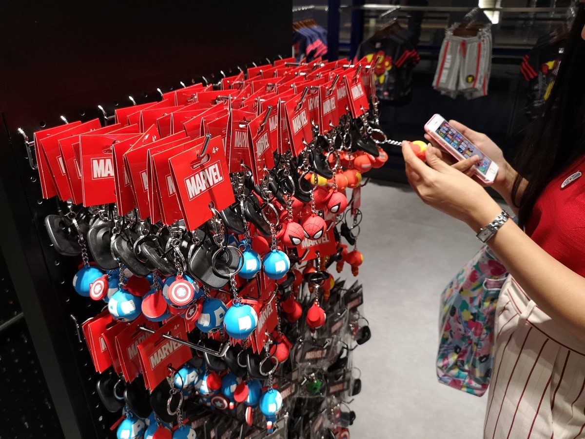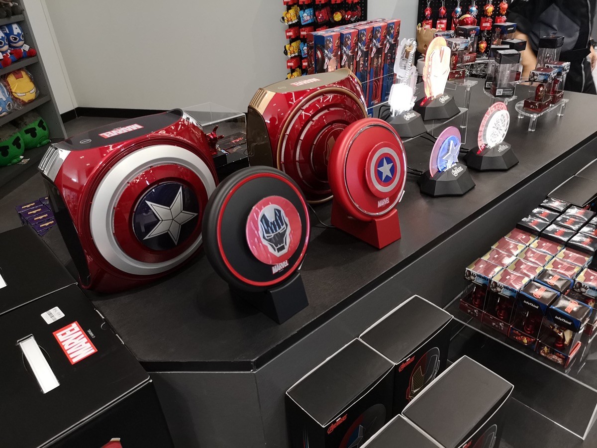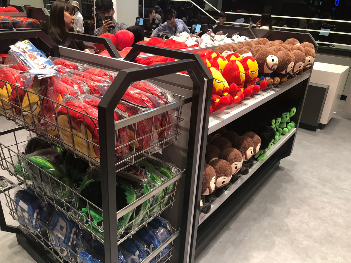 ส่วนด้านหน้านี้ จุดที่รู้สึกดึงดูดมากที่สุดคือ Marvel Super Store ร้านขายสินค้าลิขสิทธิ์มาร์เวล ที่มีค่อนข้างหลากหลาย และเย้ายวนเงินในกระเป๋าให้ควักซื้อกันได้ง่ายๆ (ฮา) มีหลากหลายตั้งแต่เสื้อยืด, หมวก, กางเกงมวยไทย (ห๊ะ!), แก้วน้ำ, ตุ๊กตา, โมเดล, เคสโทรศัพท์ ฯลฯ หรือแม้แต่ของแรร์อย่าง ถุงมือ Hasbro Infinity Gauntlet ของธานอส แบบที่ใส่แล้วขยับนิ้วมีไฟ ก็มีขายด้วย