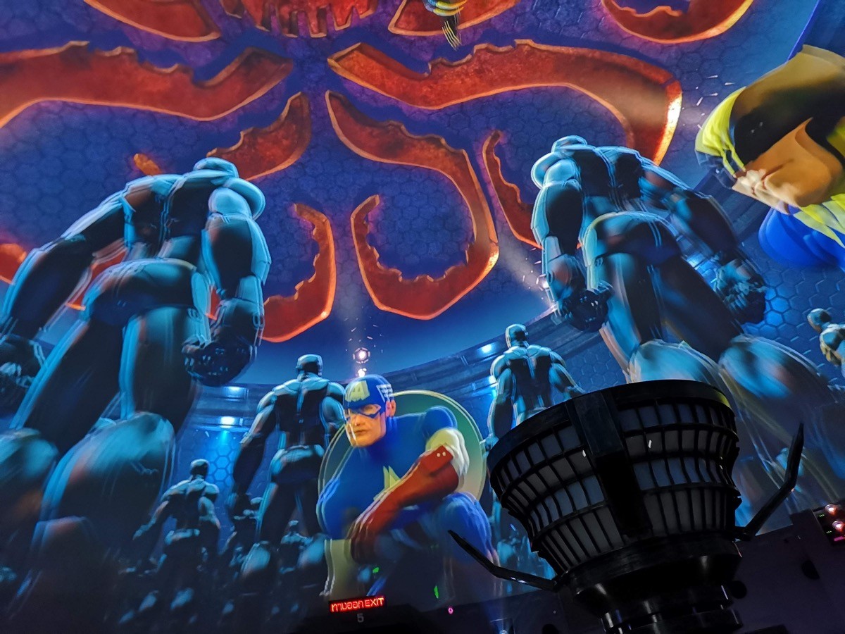 เนื้อหาในห้องนี้มีฉากแอ็คชั่นสนุกๆ ฉากแอบบุกเข้าไปในฐานทัพของไฮดร้า ที่เป็นมุมมองที่คุณต้องแหงนมองเพดานรอบห้อง ตำแหน่งและท่าที่จะให้คุณดูได้กว้างและทั่วทุกมุมได้ คือต้องลงไปนั่งกับพื้น (ใช่แล้วครับ ห้องนี้ไม่มีเก้าอี้ให้คุณนั่ง) จริงๆ อารมณ์เหมือนดูหนังกลางแปลงเลยล่ะ