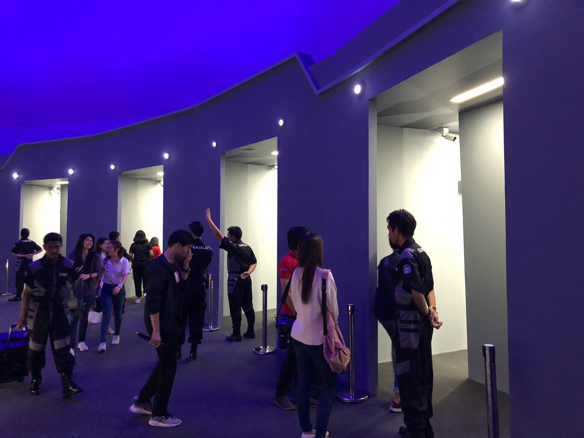 สารภาพตามตรงว่า 2 ห้องแรกผ่านไป รู้สึกเฉยๆ มาก เพราะเป็นการนำเสนอเรื่องราวแบบผ่านหน้าจอ และเป็นวิดีโอแอนนิเมชั่น พร้อมการเล่าเรื่อง อ้อ! ในรอบที่เราได้พรีวิวนั้น เสียงพากย์เป็นภาษาอังกฤษ แต่ถ้าเป็นการเข้าชมจริงๆ เวลาจองหรือซื้อบัตร เราจะเลือกภาษาที่จะบรรยายในโชว์ได้ ว่าจะเป็น อังกฤษ ไทย หรือว่าจีน โดยเสียงพากย์ไทยจะใช้ทีมพากย์เดียวกับในภาพยนตร์ของมาเวลอีกด้วย