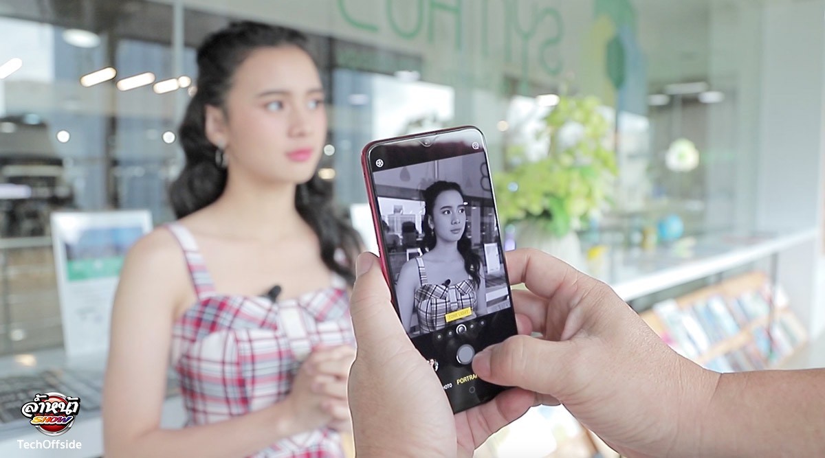 กล้องหน้ายังมีลูกเล่นให้มาอีกเพียบ อาทิ การปรับ Depth Effect เพื่อละลายฉากหลังให้เป็นโบเก้ และมีสติกเกอร์แบบ AR น่ารักๆ ให้เลือกแต่งระหว่างถ่ายเซลฟี่ได้ถึง 56 แบบ