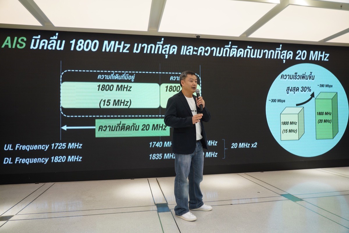 นายปรัธนา ลีลพนัง หัวหน้าคณะผู้บริหารกลุ่มลูกค้าทั่วไป เอไอเอส กล่าวว่า “เป้าหมายสำคัญของเอไอเอส คือการมอบประสบการณ์ดิจิทัลที่ดีที่สุดอย่างไม่หยุดยั้ง เพื่อยกระดับการใช้ชีวิตของคนไทยในทุกมิติ วันนี้ เราก้าวล้ำไปอีกขั้น ด้วยการลงทุนด้านเครือข่ายครั้งใหญ่ จากการประมูลคลื่นความถี่ 1800 MHz เพิ่มทำให้ปัจจุบันเอไอเอสเป็นผู้ให้บริการเครือข่ายที่ถือครองคลื่นความถี่ 1800 MHz ที่ได้รับใบอนุญาตจาก กสทช. มากที่สุด และเป็นรายเดียวที่มีคลื่นต่อเนื่องกันถึง 40 MHz (20 MHz X 2) เรียกว่าเป็น แบนด์วิธคลื่นสำหรับให้บริการ 4G ในระบบ FDD ที่กว้างที่สุดในประเทศไทย ดังนั้น เมื่อนับรวมคลื่นความถี่ 1800 MHz จำนวน 40 MHz (20 MHz X 2), คลื่นความถี่ 2100 MHz จำนวน 30 MHz (15 MHz X 2) ที่เป็นของเอไอเอสเอง และอีก 30 MHz (15 MHz X 2) ที่เป็นพันธมิตรร่วมกับ TOT และคลื่นความถี่ 900 MHz อีก จำนวน 20 MHz (10 MHz X 2) ทำให้เอไอเอสมีคลื่นความถี่ในการให้บริการโทรศัพท์เคลื่อนที่ รวมทั้งสิ้น 120 MHz (60 MHz x 2) ซึ่งเต็มเปี่ยมประสิทธิภาพ และพร้อมต่อการพัฒนาต่อยอดเทคโนโลยีเครือข่ายในอนาคต