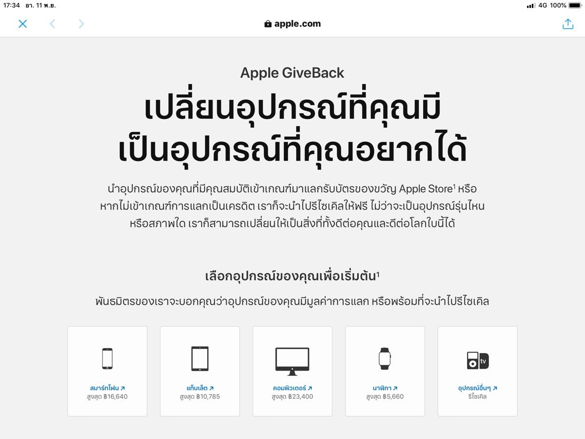 ดูรายละเอียดเพิ่มเติมเกี่ยวกับการนำเครื่องเก่าเพื่อแลกส่วนลด และการส่งเครื่องไปรีไซลเคิลได้ที่ www.apple.com/th/trade-in/