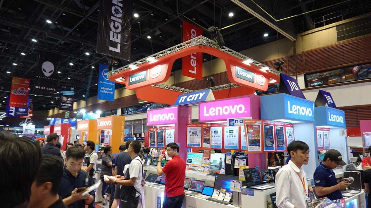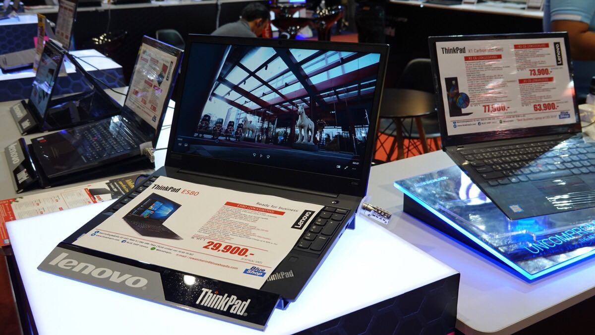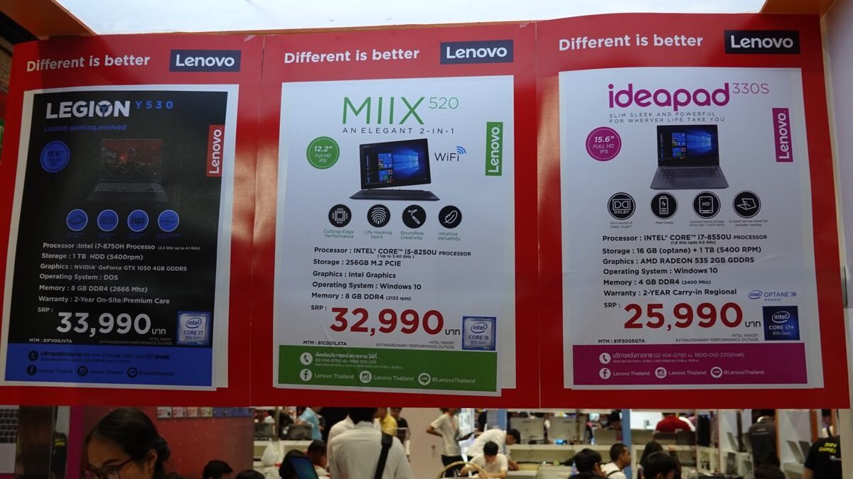 ในโซนเพลนเนรี่ฮอลล์ ก็จะมีหลากหลายแบรนด์คอมพิวเตอร์ให้เลือกซื้อเลือกชมกันหลากหลาย มาดูของทาง Lenovo กันก่อน ในงานนี้ขนมากันครบทุกรุ่นล่าสุดที่มีในตลาด ไม่ว่าจะเป็น IdeaPad, Yoga, ThinkPad ส่วนคอเกมก็มีสินค้าของ Legion มาด้วยเช่นกัน