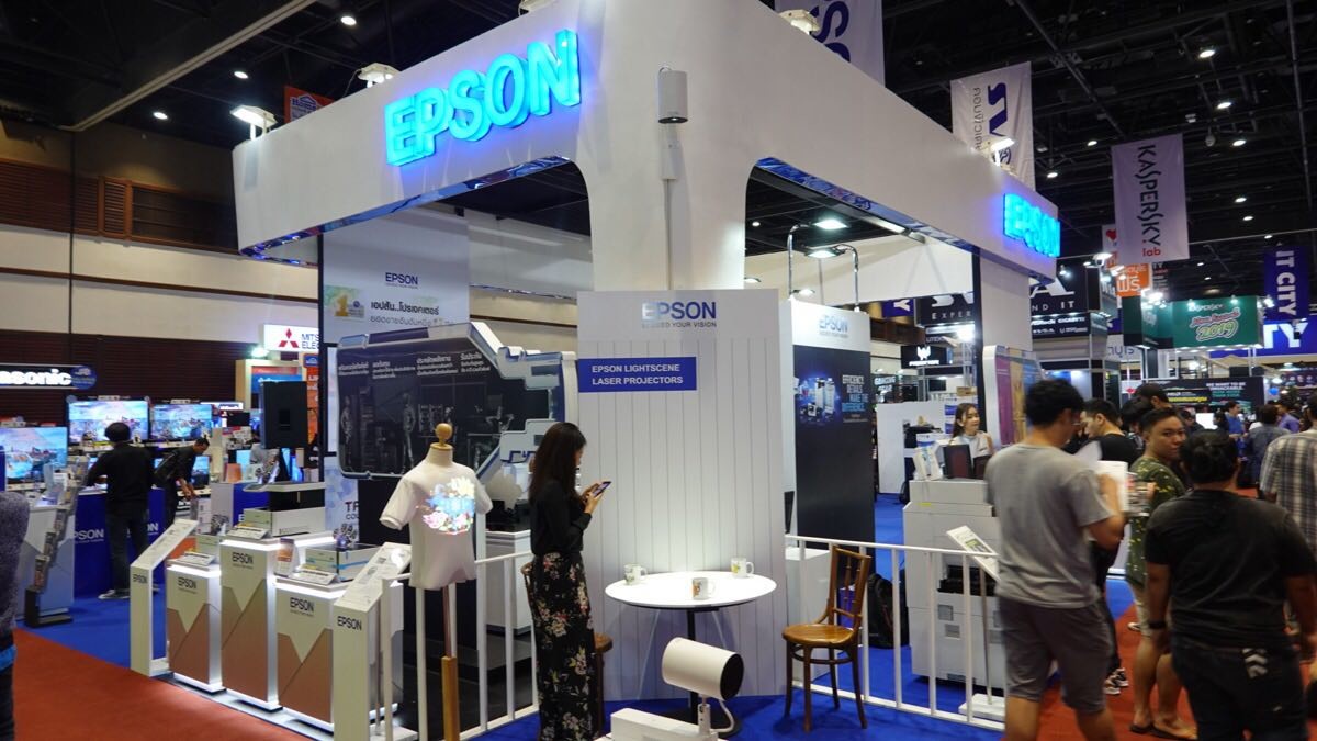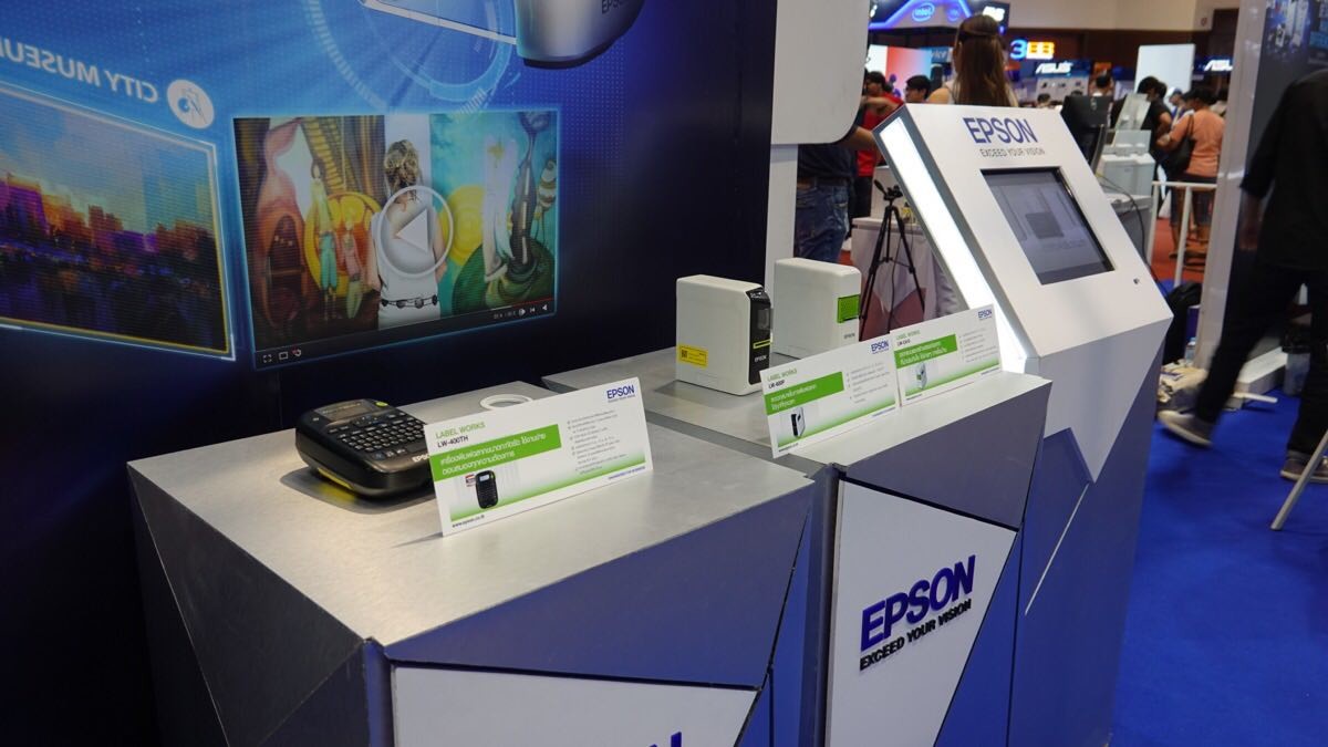 บูธของ Epson ในโซนเพลนเนรี่ฮอลล์ จะมีสินค้าทั้งตัวปริ้นเตอร์ในหลากหลายการใช้งานให้เลือกซื้อ รวมถึงตัวโปรเจคเตอร์แบบใหม่ แว่นตา AR, ปริ้นเตอร์ลาเบล ฯลฯ