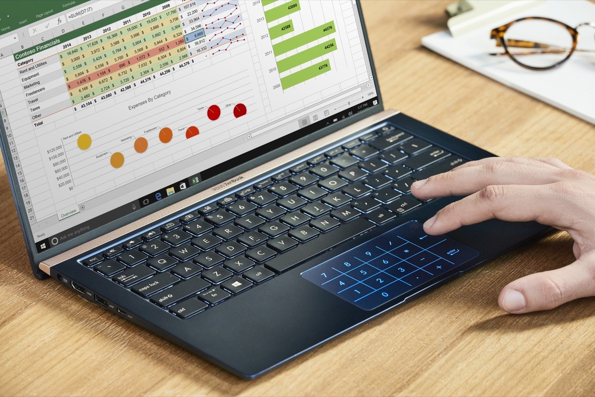 อีกไฮไลต์ของ ASUS ZenBook รุ่น 13 / 14 ซีรี่ส์ คือ นัมเบอร์แพด (NumberPad) ที่เอาแป้นตัวเลข NumPad มารวมไว้ในแป้นสัมผัส TouchPad ช่วยให้การใช้งานปุ่มตัวเลขสะดวกสบายกว่าเคย ทั้งนี้ เมื่อเปิดการใช้งาน จอทัชแพดจะขึ้นไฟ LED ตัวเลข