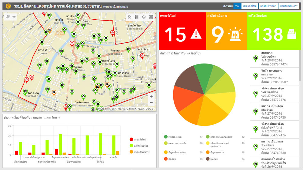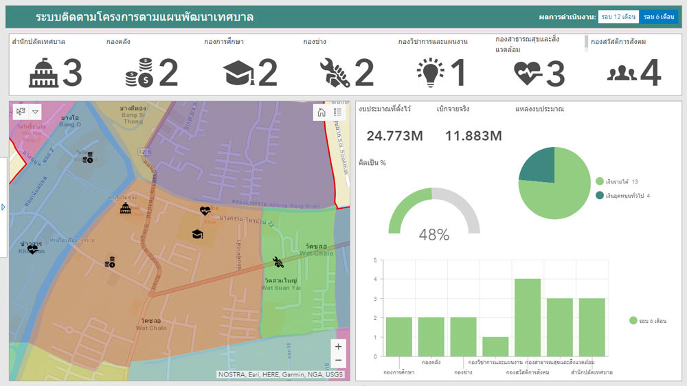ทาง ESRI ได้นำซอฟต์แวร์ ArcGIS แพลตฟอร์ม มาใช้ในการบูรณาการของข้อมูลเชิงพื้นที่ เพื่อวิเคราะห์ข้อมูล และแก้ปัญหาต่าง ๆ รวมทั้งการให้บริการประชาชนอย่างรวดเร็วและแม่นยำ ด้วยการระบุพิกัด หรือโลเกชัน ที่ชัดเจน ซึ่งเฟสแรกได้พัฒนาระบบแผนที่สารสนเทศภูมิศาสตร์ ใช้กับงานบริการประชาชน 6 ด้าน