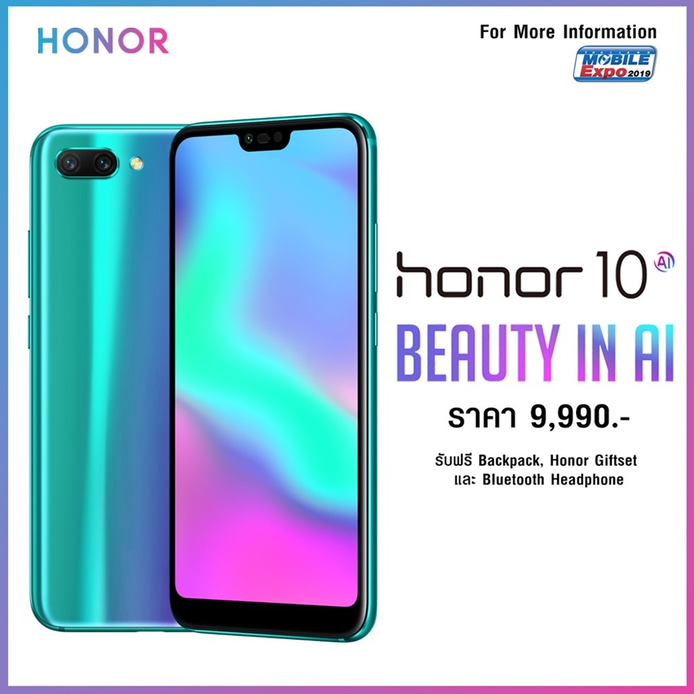 ลดราคาพิเศษในงาน THAILAND MOBILE EXPO 2019 เพียง 9,990 บาท รับฟรีทันที! กระเป๋า Backpack ชุดของขวัญHONOR Giftset และชุดหูฟังบลูทูธ