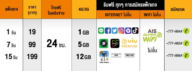- ฟรี! AIS SUPER WiFi ไม่อั้น และโทรฟรี! ในเครือข่าย AIS ตลอด 24 ชม.