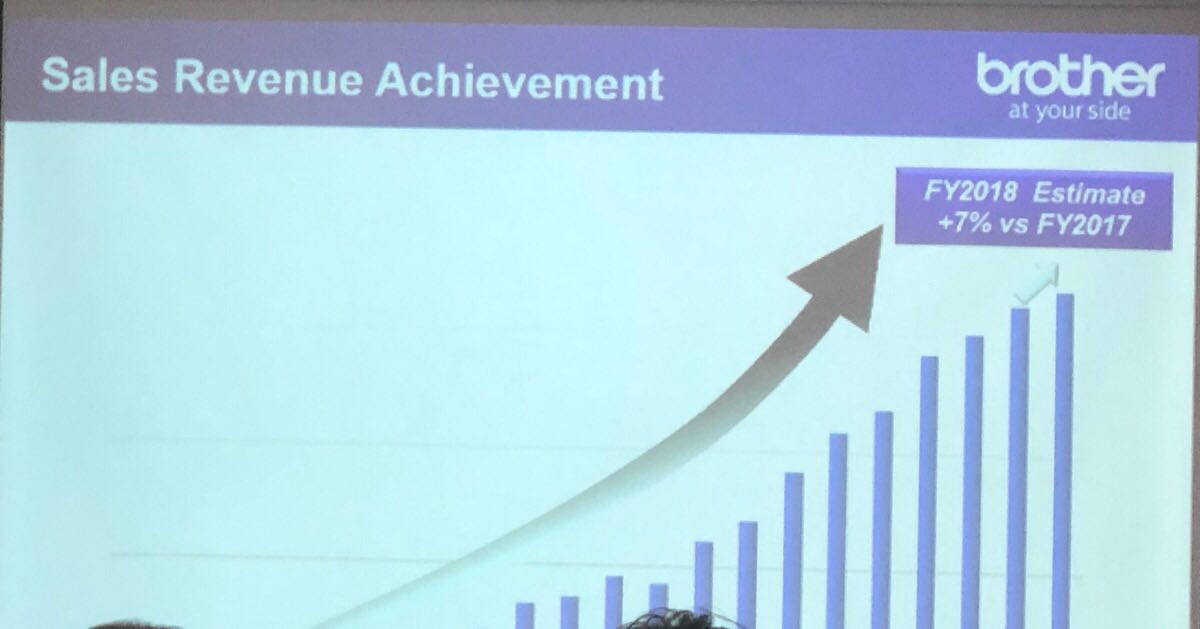 บราเดอร์ คอมเมอร์เชี่ยล (ประเทศไทย) เผยข้อมูลการเติบโตของสินค้า Brother ในประเทศไทย ปีงบประมาณ 2561 (เม.ย. 61 – มี.ค. 61) คาดว่าจะมีอัตราการเติบโตเพิ่มเป็น 7% ซึ่งสูงกว่าที่คาดการณ์ไว้แต่เดิมที่ 5%