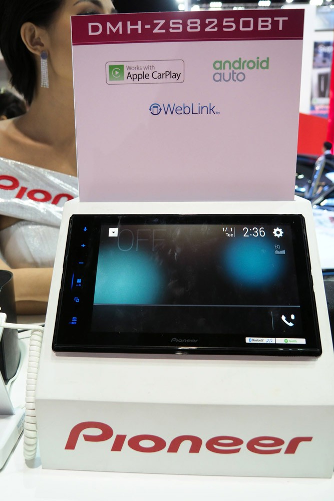 ในวันนี้เรายังได้จัดแสดงหน้าจอรุ่นพิเศษ DMH-ZS8250BT ที่มีหน้าจอขนาดใหญ่ถึง 8 นิ้ว มาให้ แฟน ๆ ได้สัมผัสกันเป็นครั้งแรก ซึ่งความพิเศษของหน้าจอรุ่นนี้อยู่ที่การออกแบบมาให้เป็นเครื่องเล่นที่ไร้กลไกอ่านแผ่น เพื่อรองรับความต้องการของคนรุ่นใหม่ที่ชื่นชอบการใช้งานแอปพลิเคชันจากมือถือภายในรถยนต์ นอกจากนั้น ยังมีรุ่นท็อปฮิต AVH-Z5250BT ขนาด 2 DIN 6.8 นิ้ว และรุ่น 1 DIN คือ AVH-X7250BT ขนาดหน้าจอ 7 นิ้ว และขนาด 6.2 นิ้ว รุ่น AVH-Z2250BT นำเสนอเทคโนโลยีที่ล้ำหน้าแก่ผู้ใช้งาน สะดวกสบายด้วยการเชื่อมต่อผ่านสายเคเบิลเส้นเดียว สามารถใช้งานแอพชั้นนำอื่นๆผ่านทาง Pioneer WebLink ที่มาพร้อมกับแป้นพิมพ์ภาษาไทย เพิ่มความสะดวกให้ผู้ใช้งานสามารถค้นหาวิดีโอที่เก็บไว้ในสมาร์ทโฟนของตน หรือรับชมสดแบบ Video Streaming ได้สะดวกและรวดเร็วขึ้นอีกด้วย