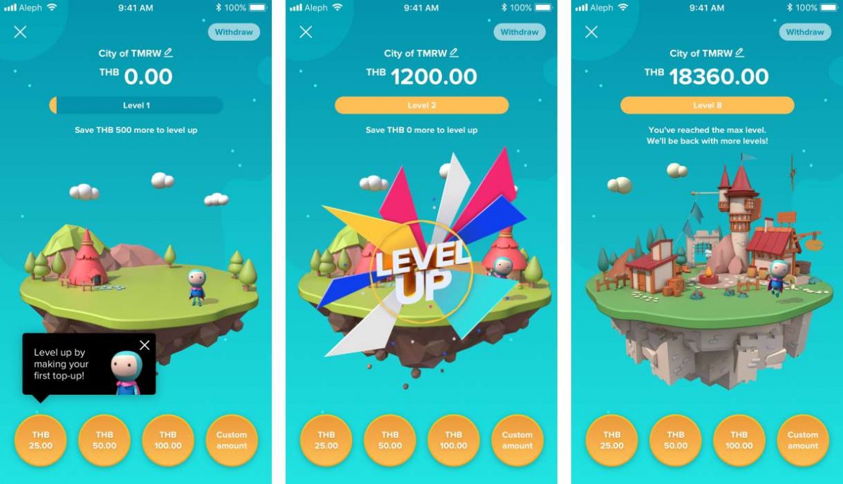 หนึ่งในฟีเจอร์ที่ได้รับความนิยมมากที่สุดของ TMRWจากกลุ่มลูกค้าจำนวน 1,500 คนที่เข้าร่วมโครงการต้นแบบในประเทศไทยคือเกมการบริหารจัดการเงินที่ช่วยให้ลูกค้าสามารถบรรลุเป้าหมายในการเก็บออมเงินด้วยขั้นตอนที่สนุกสนานและสามารถทำได้จริงนอกจากนี้ ภาษาที่ใช้ใน TMRWยังปราศจากคำศัพท์เฉพาะทางด้านการธนาคารและเป็นภาษาที่เข้าใจง่ายอีกด้วย
