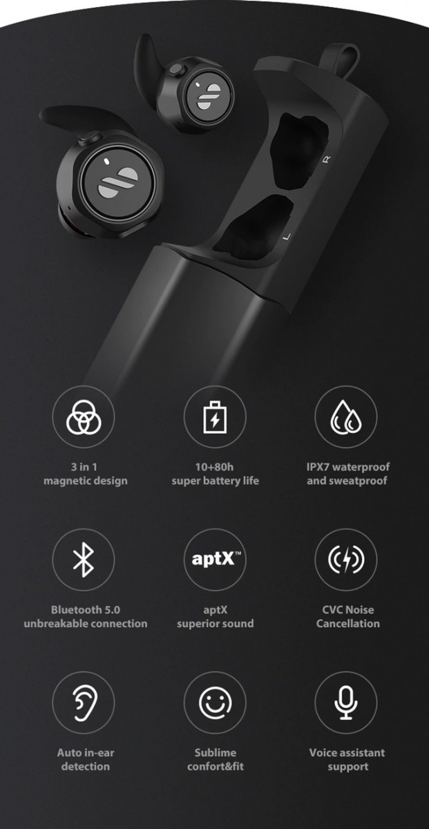 เริ่มด้วยการใช้งานรูปแบบ True Wireless หรือการเป็นหูฟังไร้สายแบบไม่ต้องมีสายมาเชื่อมต่อให้รำคาญใจเลยสักนิดเดียว ทั้งสายที่ต้องเสียบกับมือถือ หรือสายระหว่างหูทั้งสองข้างก็ไม่มีสักเส้น เพิ่มความสะดวกสบายในการใช้งานแบบสุดๆ และออกแบบมาให้สวมใส่ได้แน่น พร้อมใช้งานออกกำลังกายได้เลยด้วย