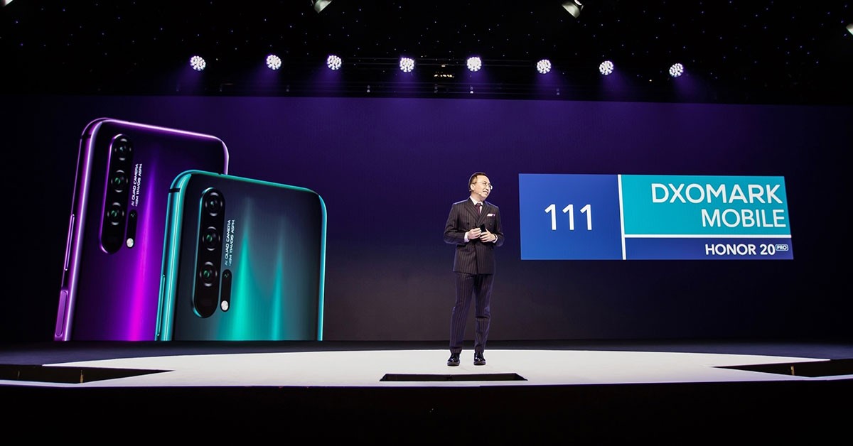 HONOR 20 Series เผยโฉมพร้อมสเปคที่น่าสนใจ HONOR 20 Pro พัฒนาเรื่องของกล้องหลัง AI 4 ตัว ทดสอบคะแนนโดย DxOMark ได้ถึง 111 คะแนน ชิปเซ็ต Kirin 980 ระดับ 7nm และ GPU Turbo 3.0 พร้อมบอดี้กระจก Dynamic Holographic Design