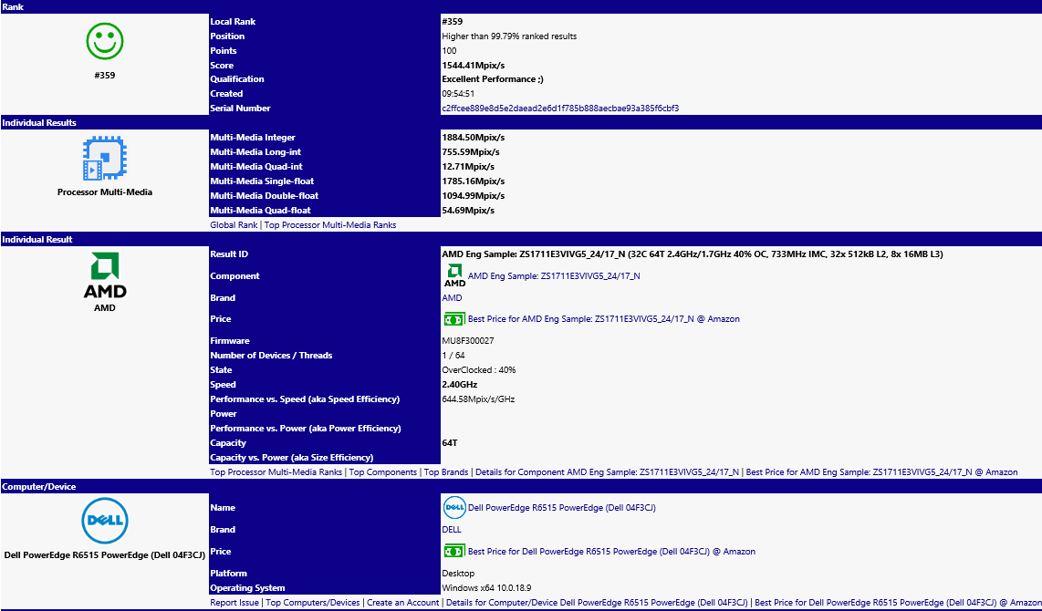 ส่วนเรื่องคะแนนที่ทำได้จากซอฟต์แวร์ทดสอบ SiSoftware ตัวนี้ อยู่ที่ 1544.41 Mpix ต่อวินาที และยังมีรายงานว่าเครื่อง Server ในอนาคตของ Dell อาจจะหันมาใช้ชิปของ AMD แทนทั้งหมดอีกด้วย