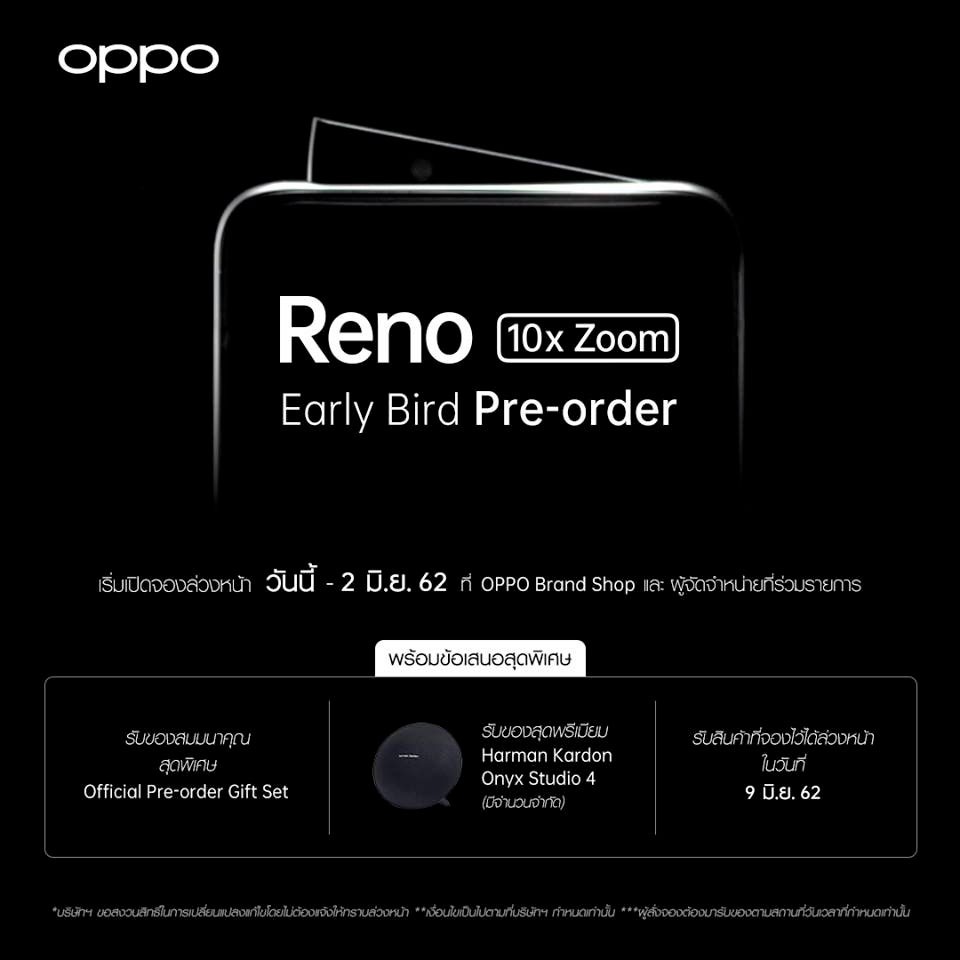 OPPO Reno 10x Zoom Early Bird Pre-order เริ่มเปิดจองล่วงหน้า วันนี้ – 2 มิ.ย. 62 ที่ OPPO Brand Shop และ ผู้จัดจำหน่ายที่ร่วมรายการ