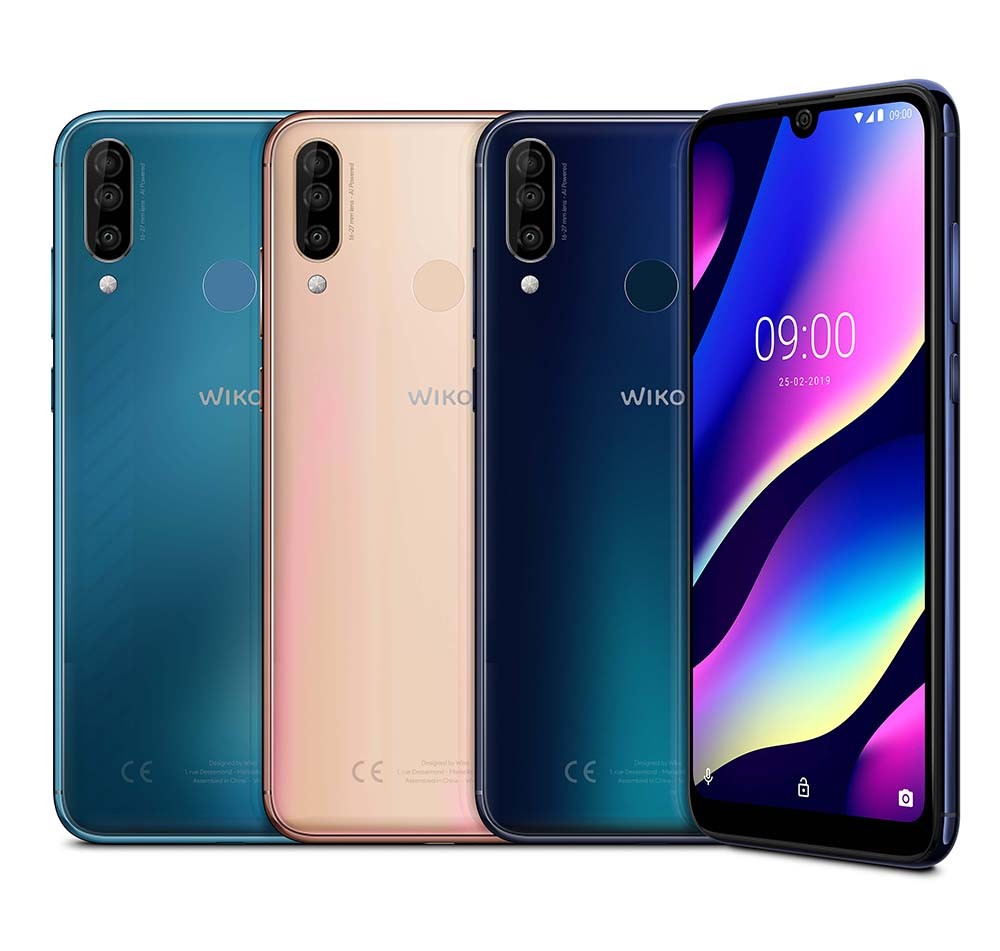 WikoView 3 (วีโก วิว สาม ) กล้องหลัง 3 ตัว ความละเอียด 12 MP + 13 MP +2MP และกล้องหน้า 8MP หน้าจอ 6.26นิ้ว แบตเตอรี่ 4,000mAh หน่วยความจำภายใน 32 GB, Ram 3GB ระบบปฏิบัติการ Android™ 9 Pie รองรับการแสตนด์บายบนระบบ 4G พร้อมกันทั้ง 2 ซิม มี3 สีน้ำเงินไนท์บลู (Night Blue), สีทองบลัชโกลด์ (Blush Gold) และสีเขียวบลีนอิเล็กโทร (Electro Bleen) ในราคา 4,990 บาท